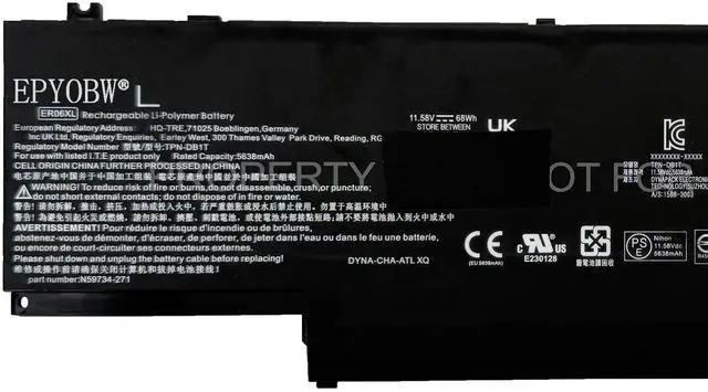 Condition: Brand New. ^^ Replace Part NumberER06XL N59788-005 TPN-DB1T N59734-271 HSTNN-OB3I N59734-AC1 ER06068XL ^^ Compatible with Laptop Models For HP EliteBook x360 1040 G11 Series. ^^ Purchase SkillsPlease open the back cover of the laptop before ordering and make sure that the original battery model is consistent with the listing. After getting the battery, please install the battery correctly, make sure that the battery connector is firmly connected to the laptop motherboard, and use the original charger to charge the laptop. Discharge the new battery to 5% (not 0%), then charge and cycle 3-95 times to wake up the new battery. ^^ EPYOBW PromiseAll EPYOBW's batteries are certificated by UL/CE/FCC/RoHS. Our batteries are tested by strict quality control standards to ensure that the capacity is true, stable current, low self-discharge. And we also have short circuit, overheat, and overload protections. We are confident in the performance of replacement batteries and professional service.