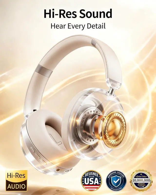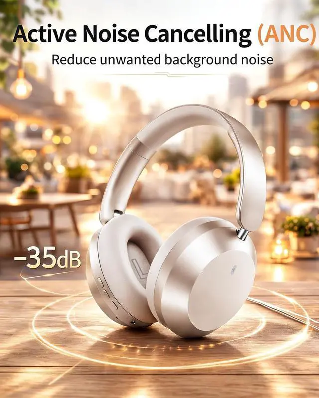 Immersive Sound That Helps You Focus Hi-Res Audio with Active Noise Cancelling delivers rich detail while reducing background noiseperfect for focused work, calls, relaxing at home, or on the go ^^ Clear Calls Anytime, Anywhere Built-in Microphone with ANC Support ensures your voice comes through clearly during meetings and calls, even in busy offices, home spaces, or outdoor settings ^^ All-Day Comfort You Can Actually Wear Soft over-ear cushions, adjustable headband, and rotatable ear cups reduce pressure for 68 hours of daily use. Comfortable with glasses and designed for long work or study sessions ^^ Wireless Freedom with a Reliable Wired Backup Bluetooth 5.3 and wired dual-mode connection let you switch seamlessly between wireless listening and wired useperfect for PCs, travel, or when you dont want to worry about charging ^^ Designed for Real Life, Not Just Specs Up to 48 hours of playtime, foldable design, and wide compatibility with iOS, Android, and PC make these over-ear headphones easy to use daily, at work, at home, on the go