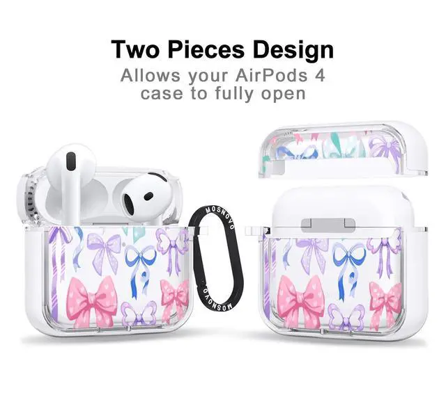 MOSNOVO Case for Airpods 4, Protective Clear Case with Shockproof Dual Layer Hard Luxe Metal Ring Designed for Airpods 4 Generation - Bows