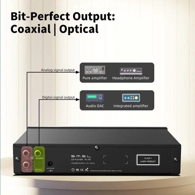 ^^ Lossless Digital Output: With both optical and coaxial digital outputs, the SMSL PL150 delivers untainted audio transmission. The optical connection minimizes electromagnetic interference, while the coaxial connection ensures precise timing during data transfer, allowing you to experience every detail and dynamic of your recordings. ^^ Simultaneous Dual