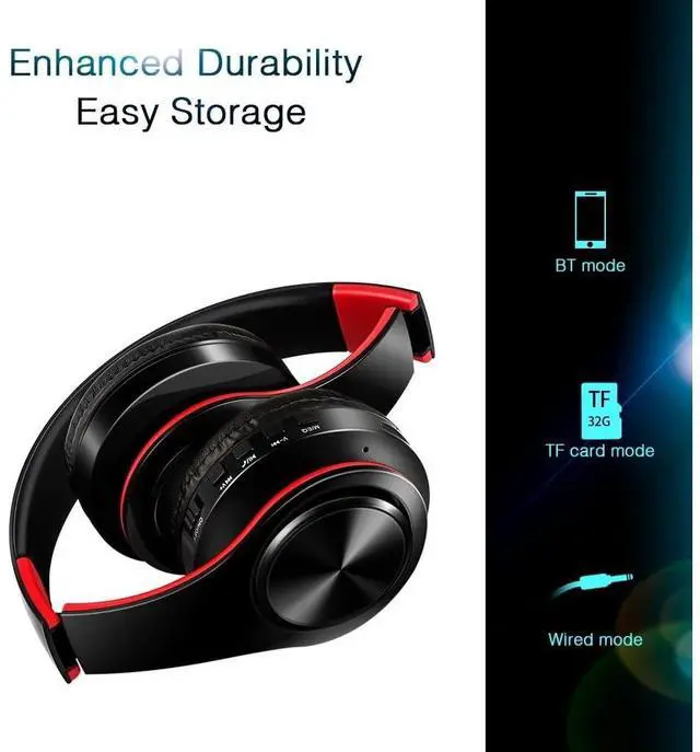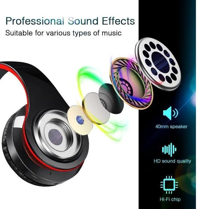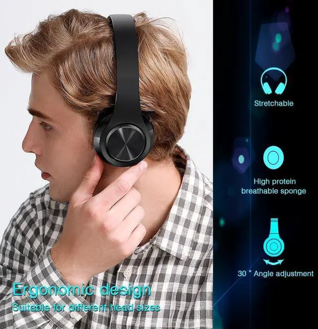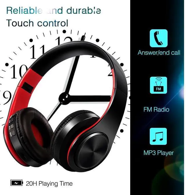 Bluetooth V 5.0 and Easy ConnectionBuilt in two 40mm large bezel driver units and Bluetooth 5.0 technology, our overhead headphones can offer more stable transmission speed, lower latency and better audio output, which give you wonderful music enjoyment. Support all audio devices that have Bluetooth capability, such as, cell phone, tablet PC, laptop, computer etc. Voice control the mode, big press buttons for easy operation of the headphone ^^ MP3 Function + FM RadioWith micro SD/TF card insert, without any bluetooth device, can still enjoy music any time any where.