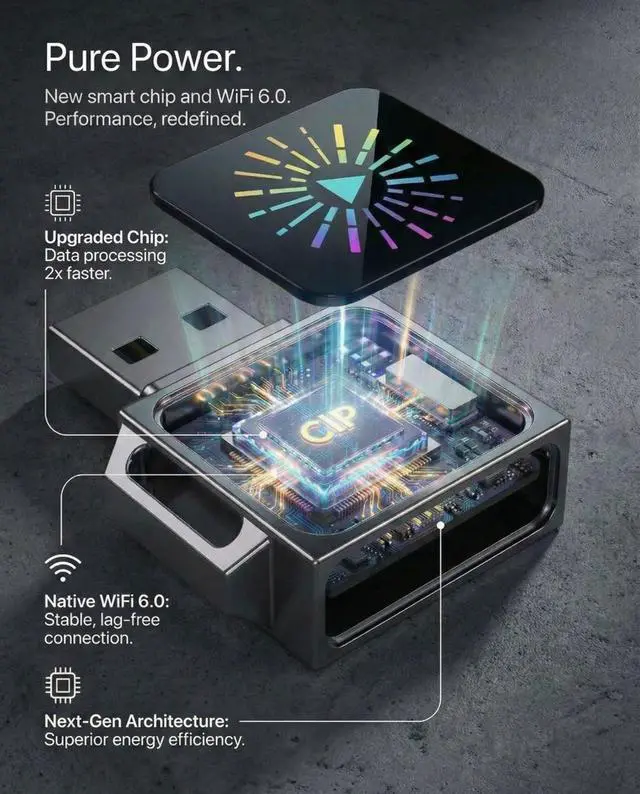 WiFi 6 Connection: WiFi 6 Wireless CarPlay Adapter Uses Bluetooth for quick pairing and WiFi 6 for high-speed data transmission, delivering smoother navigation, music streaming, and voice control with lower latency than standard wireless adapters. ^^ Mini Metal Design, Clean