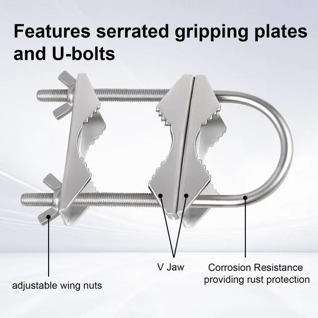 HEAVY-DUTY CONSTRUCTION - The Double Antenna Mast Clamp is crafted from high-quality galvanized zinc-plated iron with an anti-rust coating, ensuring exceptional durability. Built to withstand harsh weather conditions, it delivers long-lasting performance. Ideal for mounting larger antennas to a mast or connecting one pole to another. ^^ SUPERIOR CLAMPING FORCE - Featuring a V-jaw design, these solid brackets provide a strong and secure grip on poles, even in extreme weather. The enhanced clamping force prevents slipping or loosening, ensuring your outdoor antenna stays firmly in place, no matter the conditions.
