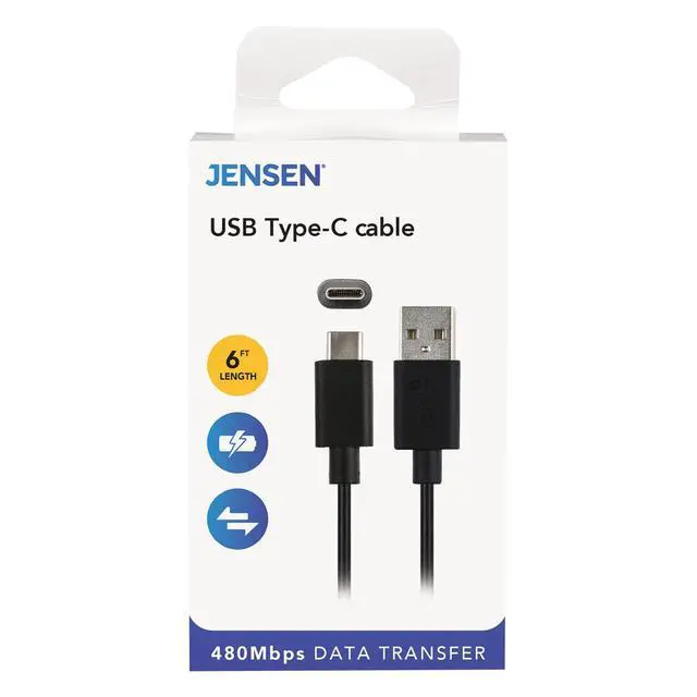 Need a reliable charging cable? Use this Charge and Sync USB to USB-C Cable from Jensen to charge and sync your portable device. This 6 ft. charging cable features 480 Mbps data transfer.