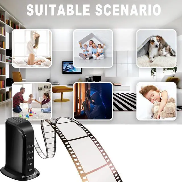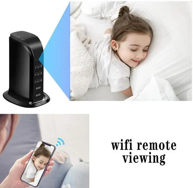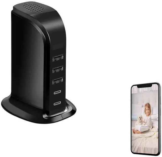 Dual-Power Hub & 1080p Charger Camera : Combines a 5-port USB charging station with a full HD 1080p security camera power devices and monitor your space simultaneously.