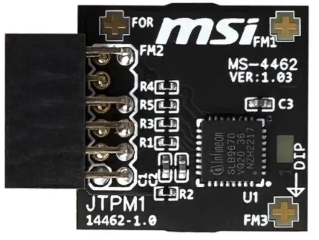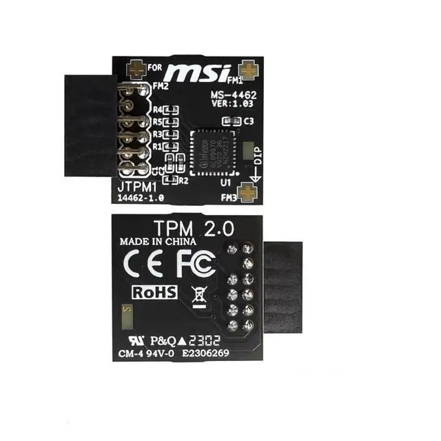 TPM modules are suitable for MSI Intel 400,500,600 and 700 series motherboards, for MSI AMD A520,B550,WRX80,X570S,B650 and X670 series motherboards