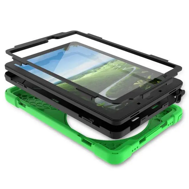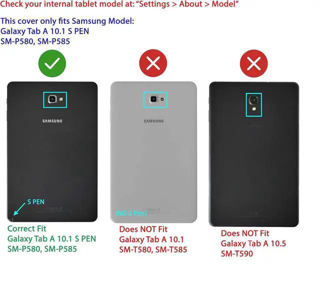 Note: WITHOUT Screen Protector. Not compatible with Galaxy Tab A 10.1 Inch-NO S Pen-2016-SM-T580, SM-T585/Galaxy Tab A 10.5 Inch-2018-SM-T590. Please check the model number before purchase. ) ^^ Multiple Protection Hard PC front cover, PC back cover and durable soft silicone shell provide your for Samsung Galaxy Tab A 10.1 Inch with S Pen-2016-(SM-P580 P585) full protection against falling and offer comfortable grip. It is not only shockproof/durable, but also comfortable hand feeling, which is definitely the best choice for your family and friends. ^^ Multi-functional Kickstand/Hand Grip - The 360 Degree rotating folding stand is stable enough on several different surfaces, ideal for watching videos, conferences, typing and travelling. The size-adjustable hook and loop grip can let you easily hold your tablet by one hand and rotate freely. ^^ Multi-function Shoulder Strap- Adjustable/Removable Shoulder Strap carries the Galaxy Tab A 10.1 Inch with S Pen-2016-(SM-P580 P585) tablet vertically or horizontally on shoulders/behind car seat/on the wall/any other places for more convenient working/video viewing/video chat/entertainment. ^^ Precise CutoutsThe precise cutouts and design easily access to all buttons(speakers, volume button, charging port, camera).