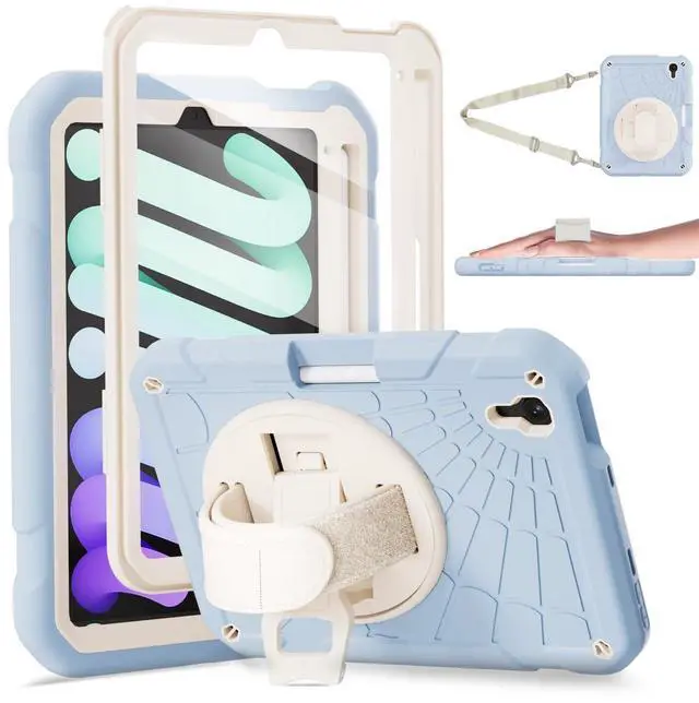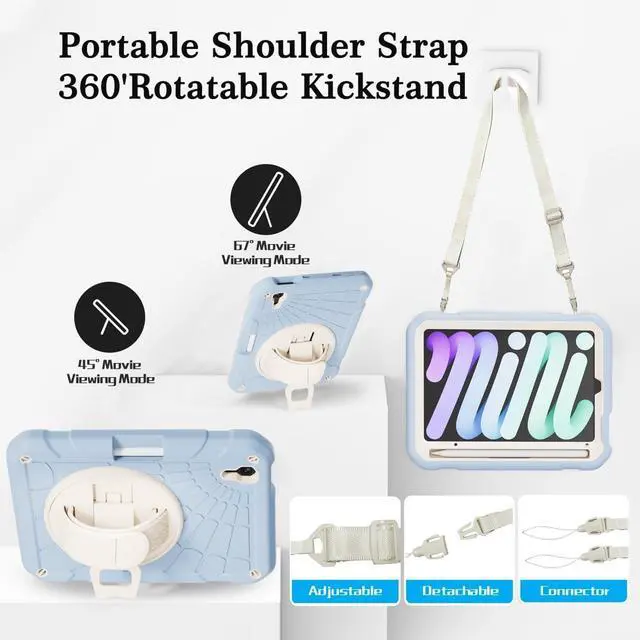 Compatibility: Exclusively designed for New iPad Mini 6 Model (A2567/A2568/A2569) 8.3 inch, 2021 released. Only Support 2nd Gen Apple Pencil Charging. Please confirm the product before purchase. ^^ Soft Hand Strap & Portable Shoulder Strap & Rotating Stand: Provide the securest protection and more convenience when you play or work with iPad Mini 6 2021. Hang it anywhere for your better entertainment, make your hands free. 360-degree rotating Kickstand provides multi-angle viewing, with a soft handle strap, easier to use your iPad in your outdoor traveling, working, and gaming with kids.