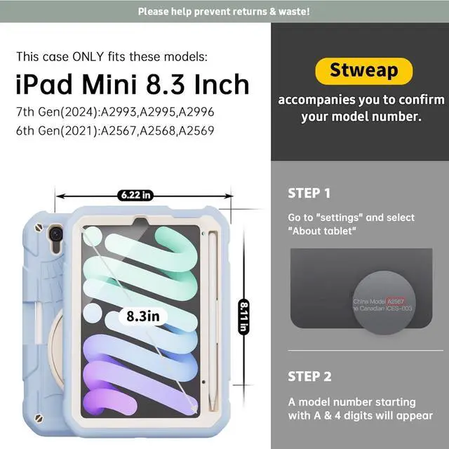 ^^ Serving: Fit for outdoor activities, free charge of Product Changes or Refunding after receiving products within 3 months & 6 months Warranty and Maintenance of Stweap iPad Mini 6 case!