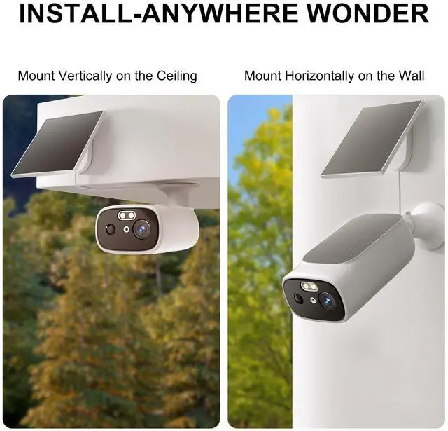 ^^ Crystal-Clear Videos, Day or Night- 2K QHD Resolution & Smart Color Night Vision Say goodbye to blurry footage. With 2K QHD resolution (2304x1296, 3MP), our camera captures super high-definition videos that are 1.5 times more detailed than 1080p. Plus, its two powerful LED lights deliver exceptional color night vision, so you can see clearly, even in the dark. ^^ Intelligent Motion Detection for Immediate Alerts- AI-Powered & Customizable Detection Zones No more false alarms! Our camera uses AI motion detection to quickly identify and monitor movements, sending you real-time alerts through the mobile app within 2 seconds.