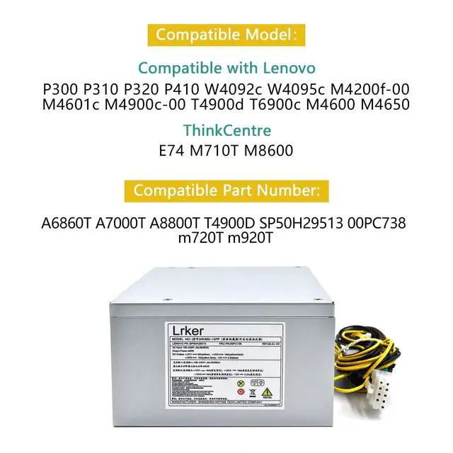 Compatible Model: Compatible with Lenovo P300 P310 P320 P410 W4092c W4095c M4200f-00 M4601c M4900c-00 T4900d T6900c M4600 M4650 ThinkCentre E74 M710T M8600 ^^