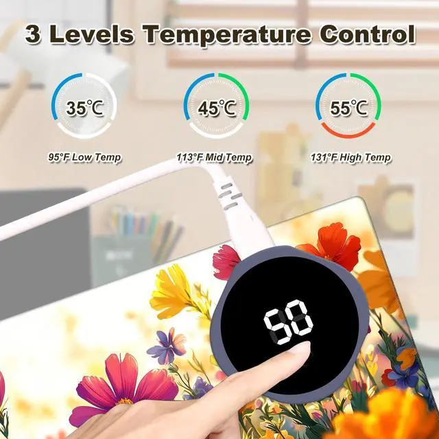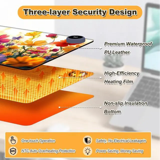 Fast & Safe Heating for Cold HandsHeats up in seconds to keep your hands warm while working. 3 adjustable heat levels (95131F) with built-in auto shut-off (13 hours) for worry-free daily use, even if you forget to turn it off ^^ Designed for Cold Desks & Winter OfficesPerfect for marble, glass or metal desks that feel cold to the touch. Ideal for winter workdays, chilly mornings, home offices, dorm rooms, and anyone who struggles with cold hands ^^ XL Desk Pad That Fits Your Entire Setup 31.5 x 13 large desk mat easily fits your keyboard, mouse, laptop and daily essentials.