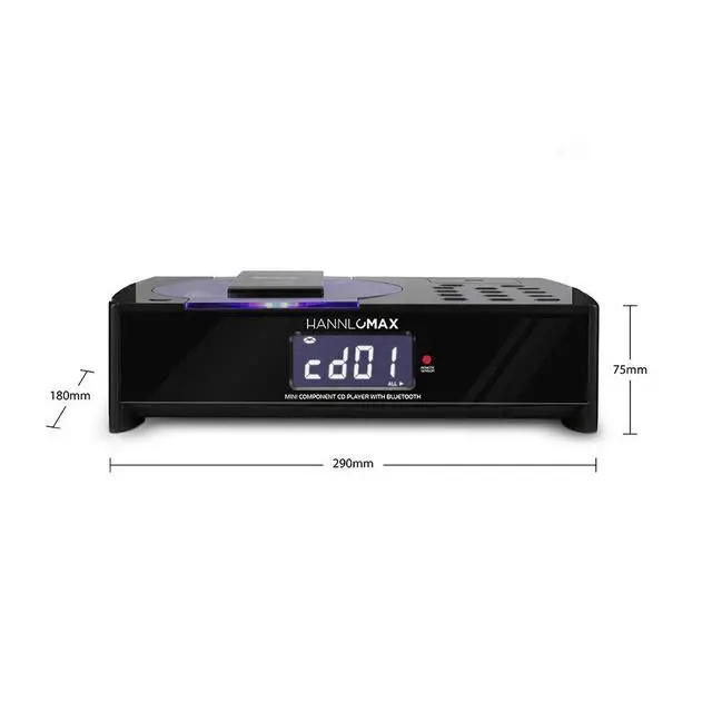 HANNLOMAX HX-1079BT CD Micro Compo, CD Player, PLL FM Radio, Digital Alarm Clock, Bluetooth, Hi-Fi Sound Quality, LCD Display with backlight, Remote Control included, AC operation only.
