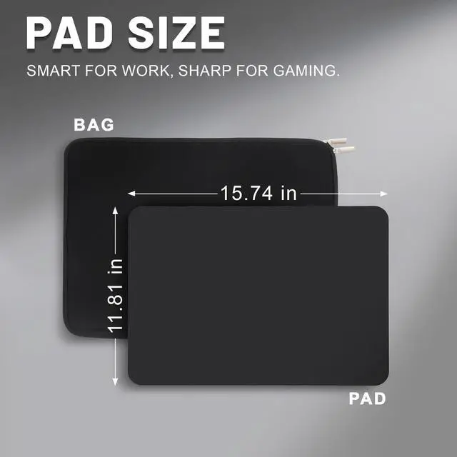 Dimensions: The glass mouse pad is available in two sizes: 13.8 inches 9.8 inches and 15.7 inches 11.8 inches. Its 3.5 mm thickness effectively reduces wrist height differences, alleviating discomfort during use and providing unrestricted maneuvering space for low-sensitivity gamers. ^^ Easy to Clean and