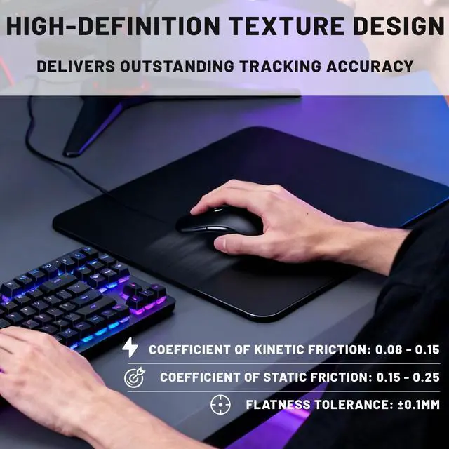 • Anti-slip base design: The gaming mouse pad features a high-density silicone backing that is thick and highly adhesive. It ensures stability and prevents slippage during both smooth daily office use and intense gaming sessions.