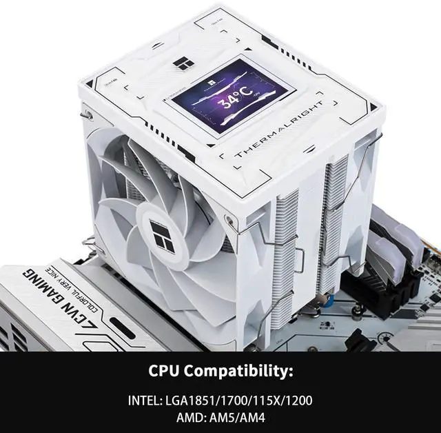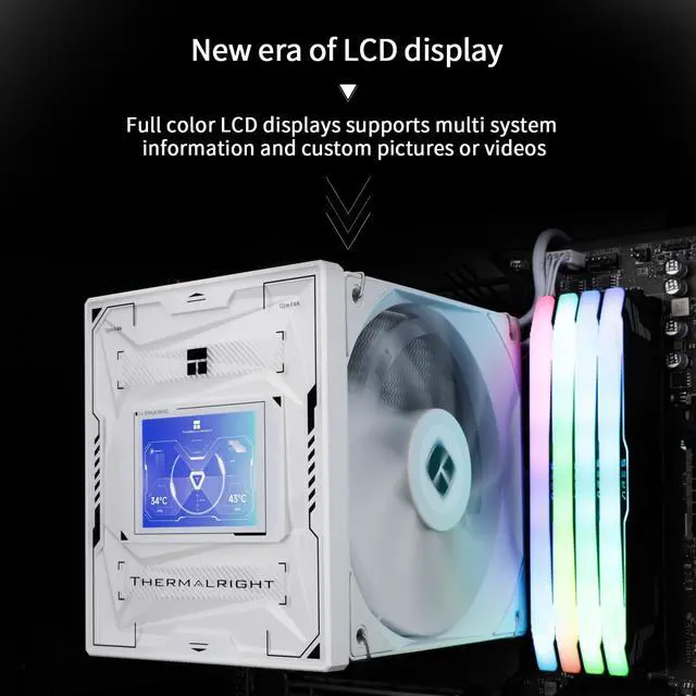 (Note that the forward and reverse fans have the difference between inlet and outlet air, you need to pay attention to the installation direction of the pc fan. ) ^^ [156MM Height] The overall height of the heatsink cooler is 156mm, making it compatible with more cases. The cooler adopts an overall all-black style, and the magnetic top cover design improves the overall cooler's value, combining the cooler's high cooling function with aesthetics. The dual-tower, dual-fan design is not limited by the height of the memory stick. ^^ [ 2.4 -inch IPS LCD Screen] The computer radiator's magnetic top cover is a square 2.4 -inch 320X240 resolution IPS LCD screen, the panel screen can accurately restore colours, equipped with the new TRCC control software can be adjusted to want to display the screen, support software control screen rotation.