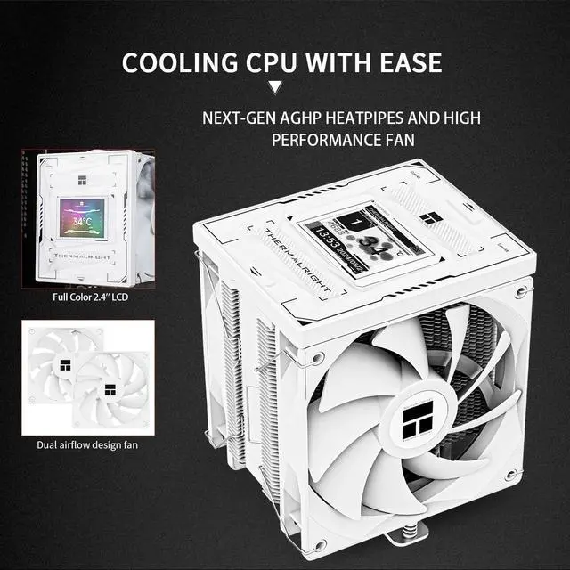 [AGHP Technology] The 6x6mm heatpipe adopts version 4.0 of AGHP technology, which can solve the anti-gravity effect due to the two orientations of standing/lying. Pure copper heat pipes and reflow soldered copper base can sense CPU temperature, and for the characteristics of the new generation dual-platform heating, the corresponding area heat pipe characteristics can be adjusted to the corresponding fine function parameters. ^^ [Dual Fan Cooling] The cpu air cooler is paired with forward and reverse rotating fans, which can effectively reduce the wind cut noise of the dual fans, the fans have PWM intelligent temperature control, no need to manually adjust the rotational speed; the included Y-type adapter allows you to connect the two fans in series with only one motherboard connector.