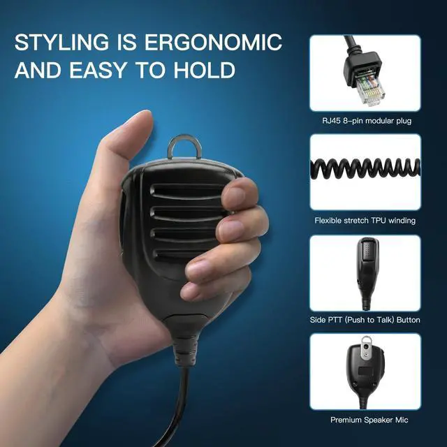 Use: Speaker microphone has wide PTT Key-press area, convenient for operating. Styling is ergonomic and easy to hold. The mic clip conveniently clips to your lapel, shirt pocket, soft and skin-friendly material provides comfort for long-time wear ^^