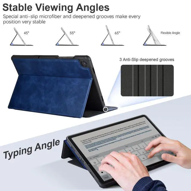 Standing Angles: this case features 3 viewing angles and 1 typing angle, The ability to adjusting the stand to various angles reduces neck strain during prolonged typing, video calls, or web browsing, making it more comfortable for work or leisure. The anti-slip microfiber Lining and deepened grooves make every position very stable and protect tablet screen against scratches ^^