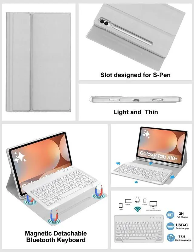 Magnetic Detachable Bluetooth Keyboard: S9 Ultra keyboard attaches magnetically to Tab S9 Ultra case and can freely change angles and positions. It can be removed when not in use, allowing you to freely switch between a lightweight laptop and tablet