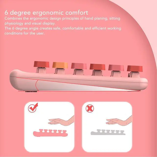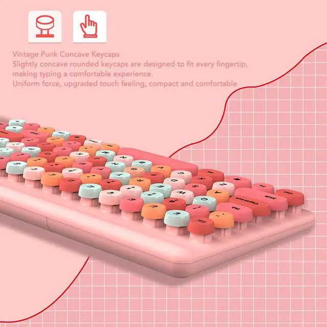 ROUNDED KEYCAPS: Slightly concave rounded keycaps are designed to fit each fingertip, making typing a comfortable enjoyment, with even force and upgraded touch feeling, compact and comfortable. 4.