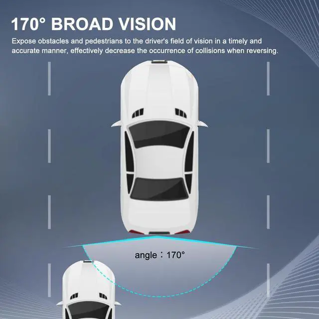 ^^ Unique Design: Backup camera adopts a wide-angle lens design, providing an extra-wide field of view to cover more areas at the rear of the vehicle, effectively getting rid of blind spots in the rearview mirror. Whether parking sideways or reversing on a narrow road, pedestrians, oncoming vehicles and obstacles behind the vehicle can all be fully displayed.