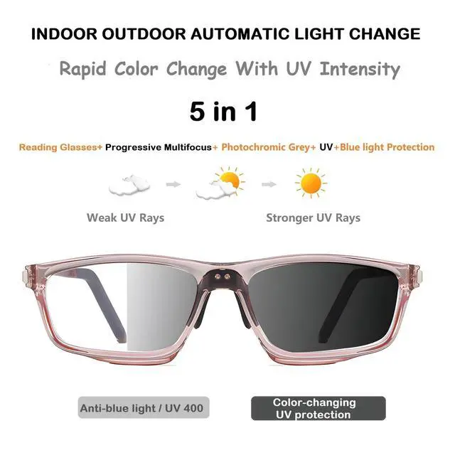• Blue Light & UV400 Blocking: These progressive reading glasses are equipped with high definition resin lenses with anti-blue light and UV400 coating, which filters out harmful blue light, reduces screen glare, and relieves eye fatigue, dryness, and sleep disorders caused by prolonged screen use.They also effectively block UVA and UVB rays, preventing possible damage from sun e