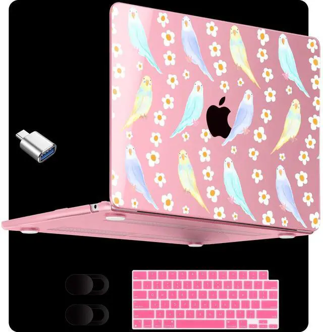 MEEgoodo for M5/M4/M3/M2 MacBook Air 13.6 inch Case 2026 2025 2024 2022(Fit Model A3449 A3240/A3113/A2681), Clear Laptop Shell Cases for MacBook Air 13-inch, Cute Parakeets