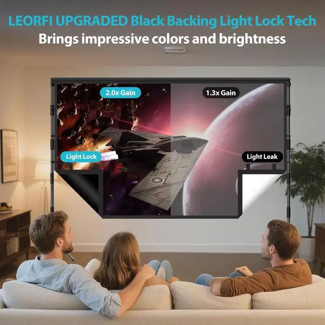 DAYTIME BRILLIANCE BLACK BACKING: Our exclusive black backing layer eliminates light bleed and hotspots by absorbing 100% of rear ambient light. This ensures vibrant, distortion-free images even in sunlit roomsunlike single-layer screens that wash out. Combined with premium polyester fabric, it delivers superior color accuracy and sharpness for daytime viewing.