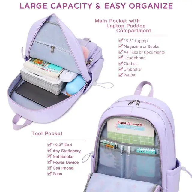 Large Size & Gift: The size of back pack is 13.8" x 7.5" x 17.8" (L*W*H), Weight: 1.65 LB. The laptops bag with padded compartment sleeve fit for 13.3, 14, 16 inch tablet. This women book bag also along with fluffy ball key pendant as gift makes the bags more fashionable and unique ^^ Waterproof