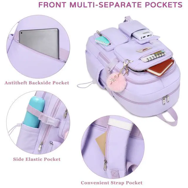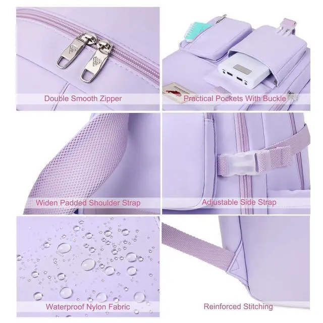 Multi-compartments & Large Capacity: The travel backpack for women has 7 separate different compartments and two side elastic pockets. The front three pockets can hold charge device and other small items. The main compartment of includes laptop padded sleeve with elastic belt. The front tool compartment also come with multiple pockets to provide roomy space for necessities. The back zipper pocket can protect your important items from theft. ^^ For Any Ages & Occasion The lightweight backpacking purse is stylish enough for casual and student use, while the design provides the multi functionality. Backpack perfect for young teens, girls, ladies. The basic multipurpose daypacks for most of your needs, easy to match your cloths, suitable for short trip, travelling, work, shopping, university, elementary school, etc.