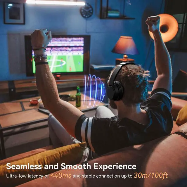Whether you're savoring the intricate harmonies of a symphony or catching every word of a gripping drama, these headphones ensure you never miss a beat. Each listening session becomes an immersive journey, where every detail is vivid and every emotion resonates deeply ^^ [Freedom to Move, Without Missing a Beat] Experience ultra-low latency (<40 ms) and a stable wireless connection up to 30m (100ft). Watch a thrilling match and grab a snack without missing a second of the actionevery cheer and shout stays perfectly in sync. Or immerse yourself in a suspenseful movie, feeling every whisper and heartbeat in real time, even as you move around.