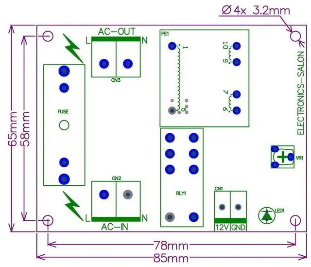 Delay time adjust range: 1 ~ 10 seconds (adjust the VR1 potentiometer on board).