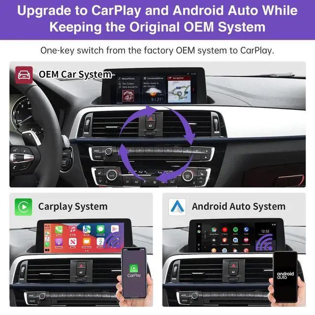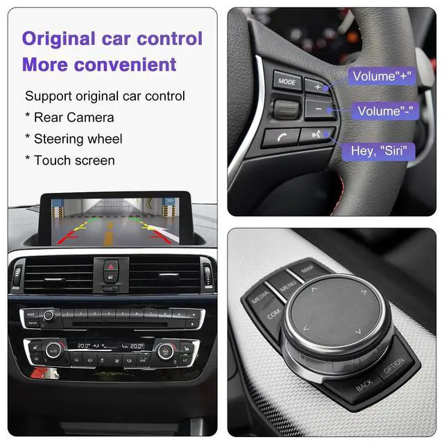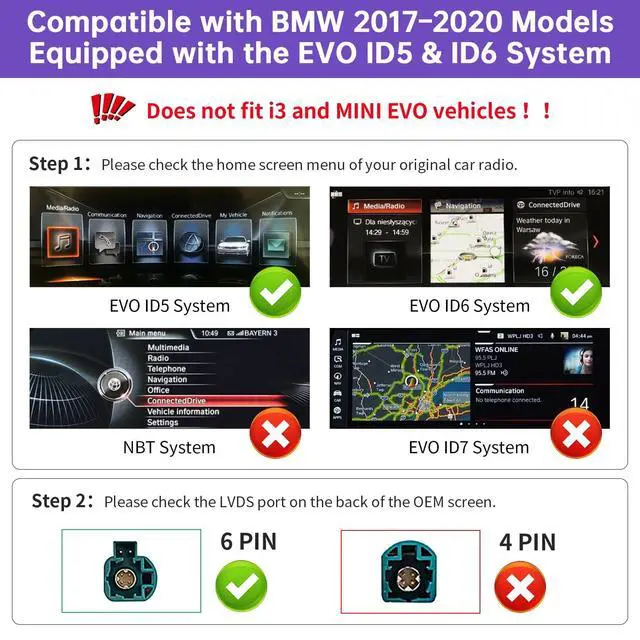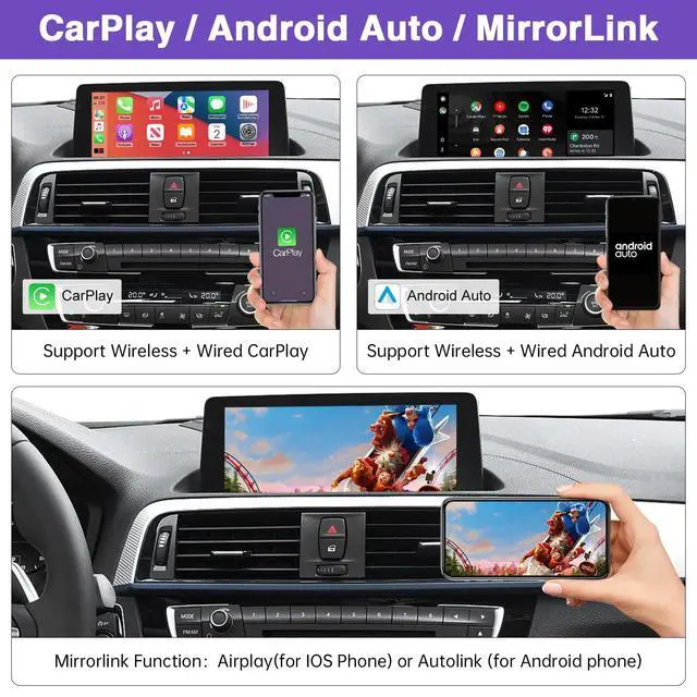 Pre-Purchase Notes Compatible with BMW 1/2/3/4/5/6/7/M3/M4/M5/X1/X2/X3/X4/X5/X6 (20172020) equipped with the EVO system only; not compatible with CIC or NBT systems. Please carefully review the product images to confirm your vehicle system before purchasing. ^^ Supports Wireless & Wired CarPlay and Android AutoDepending on your phone type, the unit supports both wireless and wired CarPlay/Android Auto. It works with Siri, Maps, Music, phone calls, Waze, Sygic, iTunes, Apple Music, and other third-party apps. Also supports factory reverse camera, parking radar, aftermarket reverse cameras, 360 cameras, and front DVR camera (CVBS input).