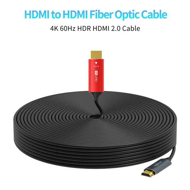 Premium high speed active 165FT HDMI fiber optic cord male to male for your PS4 pro, Xbox ones, Blu-ray player, DVD, Ultra HD TV, computer monitor, home theater projector, etc. ^^ Supports All Formats of 4K 60Hz, 3D UHD 2160P HDR 1080P, Audio Return (ARC), 18Gbps bandwidth, HDCP 2.2, Dolby True HD 7.1 audio and Hot plugging etc. ^^ The optical fiber Cable adopts different design styles, it has a certain transmission direction. 4K Fiber HDMI Cord uses different colors to distinguish the two ends, a Source on the red side and a Display on the gray side.