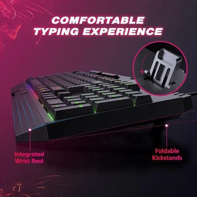 Keyboard Combo: Includes breathing rainbow light computer gaming keyboard and RGB backlit gaming mouse. 2 in 1 PC gamer kit for gamers. Full Size Gaming Keyboard with 18