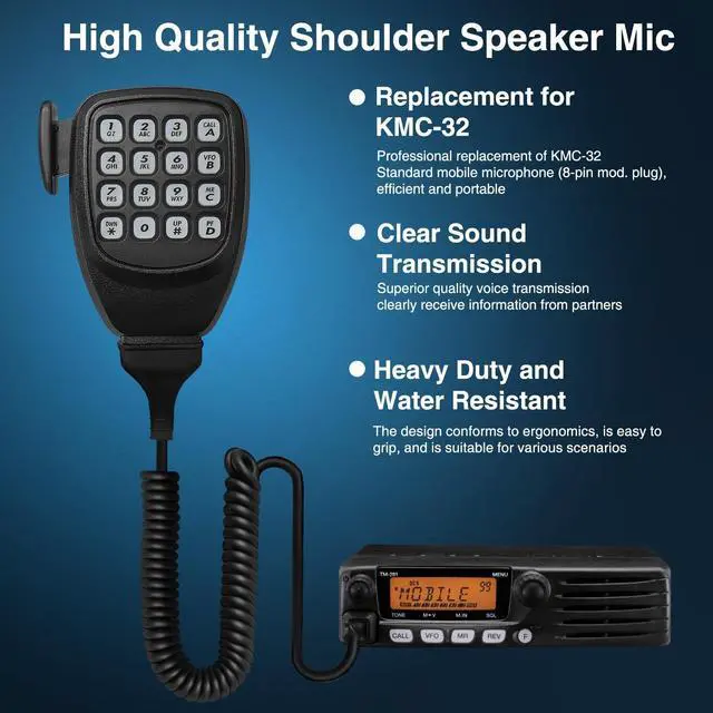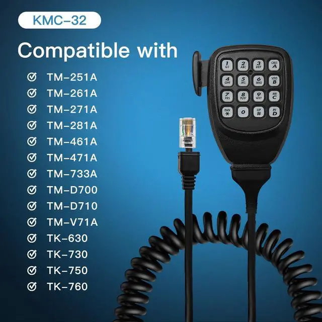 Widely Compatibility: KMC-32 hand mic is designed for TK-768G/TK-868G, TK-768GC/TK-868GC, TK-768GM/TK-868GM, TK-7100/TK-8100, TK-7108/TK-8108, TK-7360/TK-8360, TK-90* TKR-750/TKR-850* TS-480* TM-251A/TM-451A/TM-551A, TM-255A/TM-455A, TM-261A/TM-461A, TM-271A/TM-471A, TM-281A/TM-481A* TM-642A/TM-742A/TM-942A, TM-732A, TM-733A, TM-741A/TM-941A* TM-D700A, TM-D710A, TM-G707A, TM-V7A, TM-V71A, TM-V708A ^^ Crystal-Clear Audio with