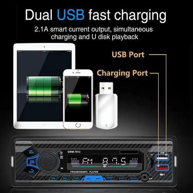 Build-in Bluetooth 5.0: This 7 single din car radio easily pairs with most Bluetooth devices, allowing you to make and receive all calls and stream your favorite music hands-free. ^^ Siri & Google Voice Assist Button: Press the knob to quickly wake up the voice assistant, make calls, switch voices, and adjust the volume.