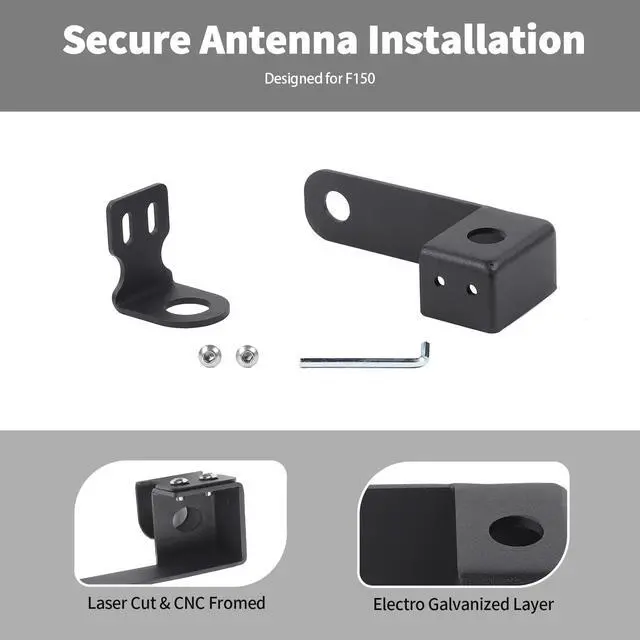 Secure Antenna InstallationThis CB antenna mount offers a secure, dedicated installation point to keep your antenna stable and prevent it from loosening or falling off. Its no-drill design uses existing tailgate hinge bolts or gaps, protecting your vehicle from damage while ensuring quick and easy installation or removal.