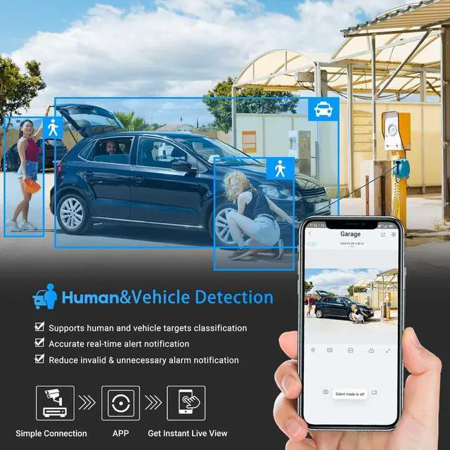 Work with POE NVRs this 5MP IP camera Works with PoE NVR, supports Open Network Video Interface protocol to connect with other NVR, and work with Blue Iris and iSpy. This home security ip camera has a secure SSL/HTTPS connection, CE certification, FCC certificate, and is firmware updatable; ^^ Full Color Night Vision 5MPWith full color technology, high-performance sensor, large aperture lens and soft supplemental lighting come together can capture more available light, and display more colorful image details, even in total darkness; 5MP resolution (30fps@5MP 2592 1944)featuring the latest CMOS1/ 2.8" image sony sensor, 2.8 mm fixed lens offering super-wide 103 viewing angle, allow you cover more ground, always keep your safty ^^ AI Human/Vehicle Detection&Built in MicThe security 5mp poe camera equipped with professional human/Vehicle detection functions, the detection area or sensitivity can be adjusted to effectively reduce false alarms.