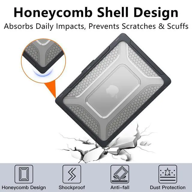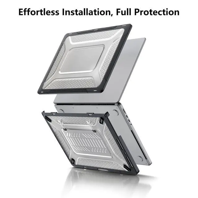 [2021-2026 Precision Fit] Custom-engineered for MacBook Pro 14 inch (2026-2021 Release). Features precision molding for a secure and precise fit across M5 or M1/M2/M3/M4 Pro/Max models. Compatible with models A3426, A3427, A3434, A3112, A3185, A3401, A2918, A2992, A2779, A2442. (Please verify your model on the bottom before purchase) ^^ [Rugged Dual-Layer Shield] Combining a tough Honeycomb hard shell with a flexible TPU bumper, this case offers effective shock absorption. Designed to withstand daily bumps and impacts, the reinforced corners provide reliable security for your device without adding unnecessary bulk ^^ [Ergonomic Stable Kickstand] Designed to support a more comfortable viewing and typing posture.