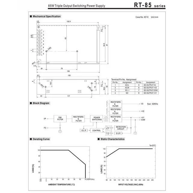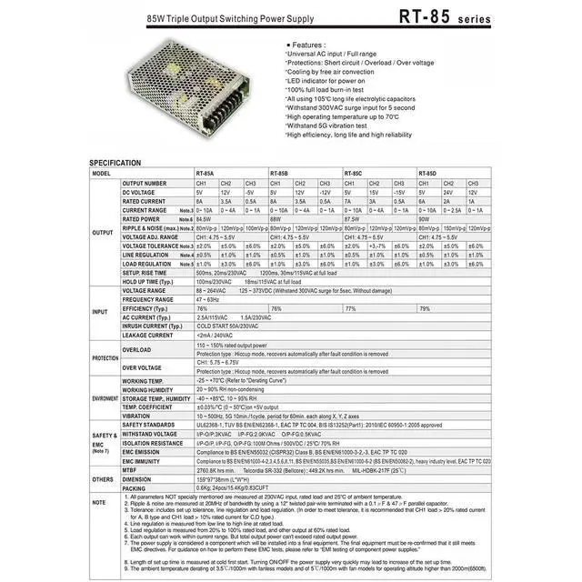 Universal AC input /Full rangeProtections: Short circuit / Overload / Over voltageCooling by free air convectionLED indicator for power on100% full load burn-in testAll using 105 long life electrolytic capacitorsWithstand 300VAC surge input for 5 secondHigh operating temperature up to 70Withstand 5G vibration testHigh efficiency, long life and high reliability
