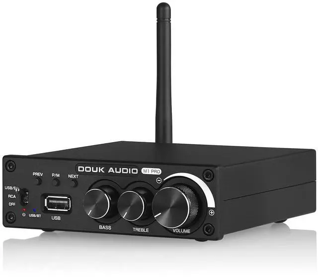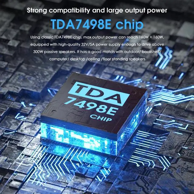 [Upgrade!!! Newest version optimize the Bluetooth range and stability as well as sound quality] Using classic TDA7498E chip, max output power can reach 160W + 160W, equipped with high-quality 32V/5A power supply enough to drive above 300W passive speakers. It has a good match with outdoor/ bookshelf/ computer/ desktop /ceiling /floor standing speakers. ^^ M1 PRO supports stereo RCA and Bluetooth 5.0 input, compatible with phones, computers, TVs, MP3 players, TV, Echo Dot, CD players etc. It is also a digital music player with U-disk input supporting MP3, WAV, APE, FLAC and WMA lossless formats.