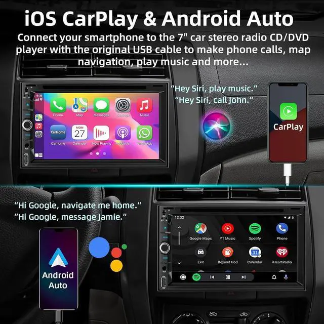 Seamless Smartphone Integration: Apple CarPlay & Android Auto-- Access icons on your iPhone by activating Siri/Google Assistant voice controls or touchscreen. Available features include Phone, Music, Maps, Text messages, Radio, Podcasts, Audiobooks. This car stereo make your drive more interesting. ^^ Entertainment on the