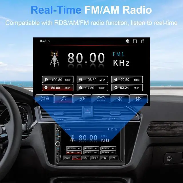 ^^ Full Screen Mirroring: Mirror Link--The 7 inch double din car stereo support IOS and Android phones for mirror link function, connect your smartphone to double din car stereo apple carplay via a original USB cable or wireless, easily connect and sync you phone any content to the car player displayed on a large screen.