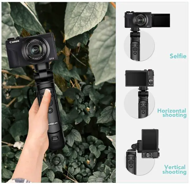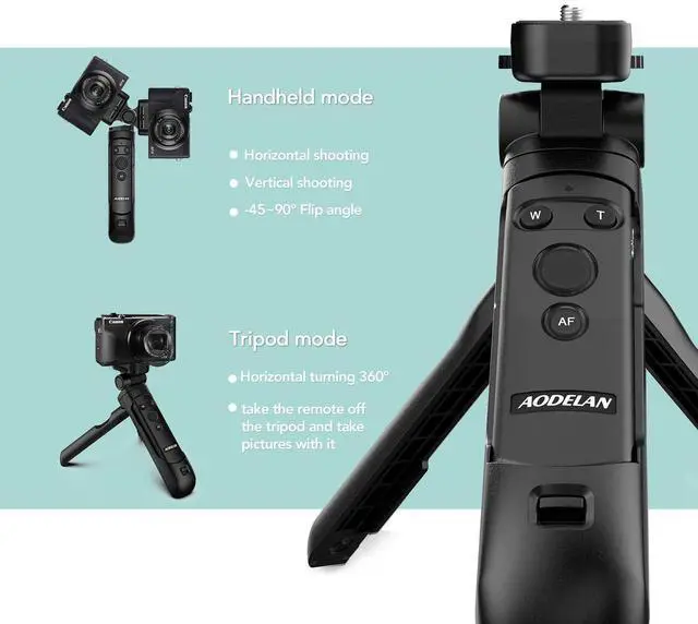 [ Compatible Camera ]-This AODELAN Camera Remote Compatible with Canon EOS RP, R8, R5, R6, R6 II, R7, R100, R10, EOS R, EOS M6 Mark II, Rebel SL2 (200D), SL3 (250D), EOS 77D, EOS M50, EOS 6D Mark II, PowerShot SX70 HS, PowerShot G5 X Mark II, PowerShot G7 X Mark III, EOS Rebel T7i (800D). ^^ [ Flexible Usage ] - The remote control and tripod are detachable, the remote control can be installed on the handle or used as a remote control alone.