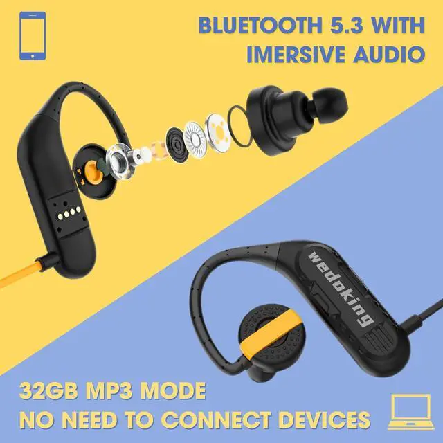 Drop Resistant: Earplug headphones are fully sealed against dirt and IPX8 waterproof allows for worry-free usage in wet and demanding conditions. With an IPX8 waterproof rating, the wireless headphones are fully waterproof, ideal for swimming or underwater, and withstand submersion in up to 5 meters of water. Please switch to MP3 mode before you go into the water, Bluetooth mode will disconnect underwater.