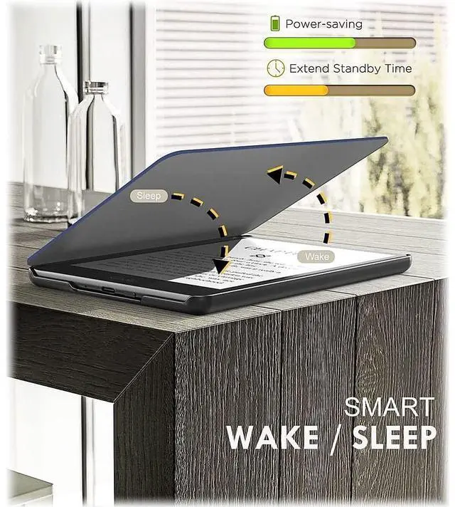 Designed for use with Kindle Paperwhite - Complement your device with this lightweight, formfitting case featuring an open-button design ^^ Vegan leather and TPU materials - Feature reduced stretching and yellowing to ensure durability ^^ Ergonomic open-button design - Offers access to all tablet features ^^ Auto sleep and wake cover - Automatically wakes up your device when opened and puts it to sleep when the case is closed to keep the battery life longer ^^ SAHARA Limited Lifetime Replacement Warranty.