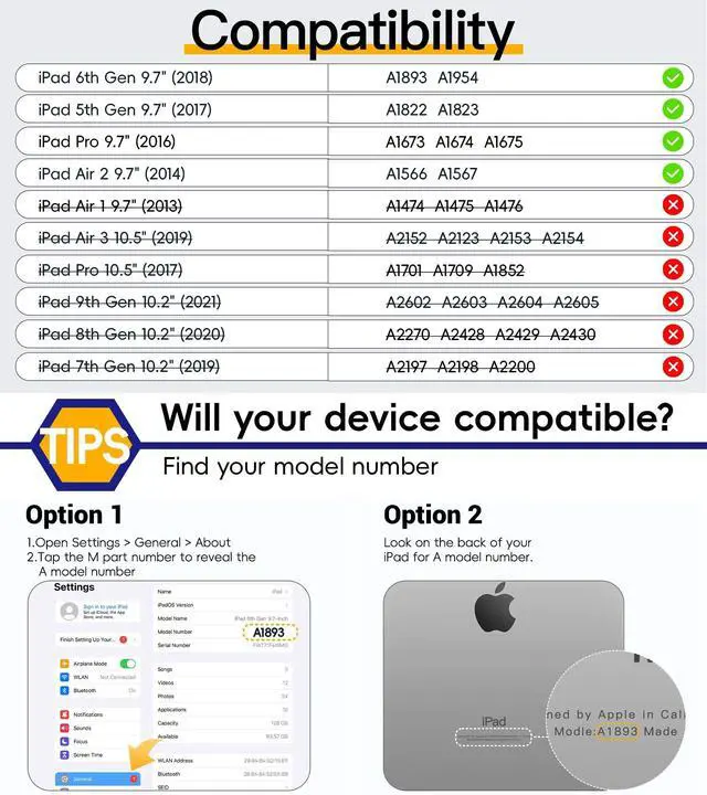 Pro 9.7 inch 2016 (Model: A1673/A1674/A1675), and iPad