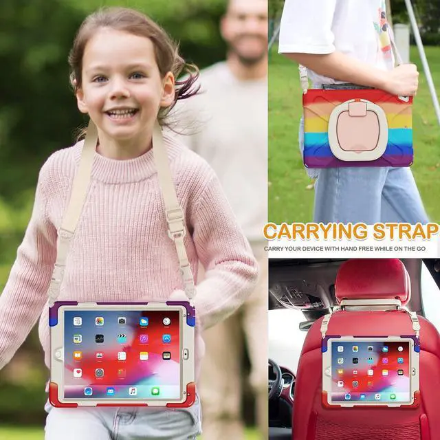 Multi-Function Features: 360rotating / 180folding Grip can be used as a handle, easy to hang your iPad in kitchen, washroom, bedroom; Kickstand is stable enough to stand on different surfaces for children to view. And with a adjustable shoulder strap, it is convenient for you to carry and hang everywhere ^^